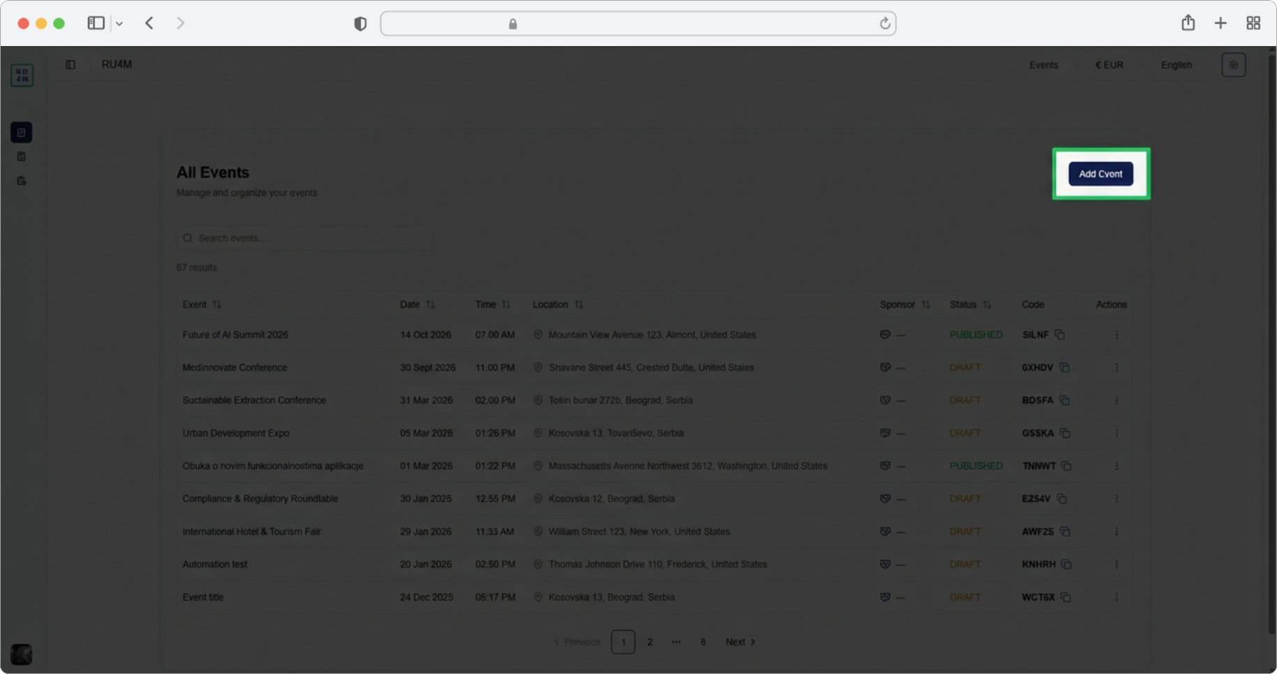 This is a complete, step-by-step guide to creating a new event in the RU4M Backoffice. By completing the first three steps, you will be able to create an event, publish it, or save it as a draft. All other steps after that are optional — you can fill them in if you have the information, or skip them entirely.