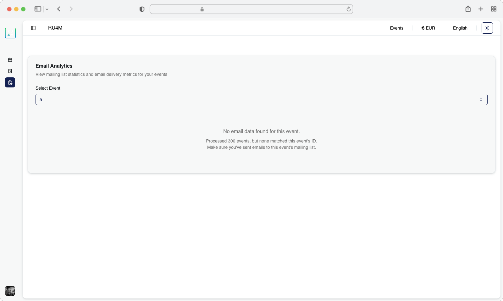 This path is useful when you are already viewing a specific event's details and want to quickly check its email analytics.